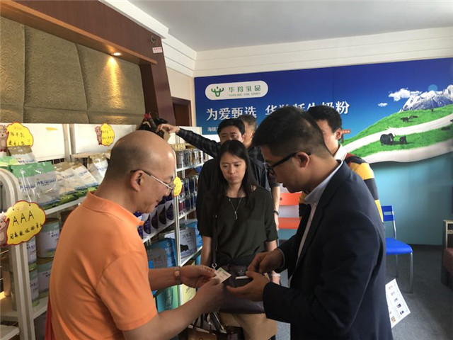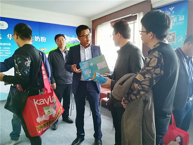 敏少華向客商介紹牦牛乳配方奶粉