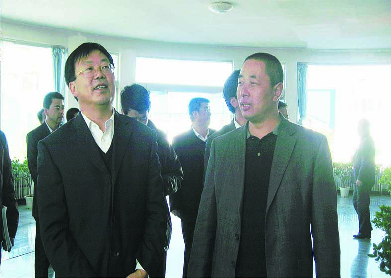 原甘南州政協主席楊繼軍(左)在集團董事長敏文祥(右)的陪同下視察華羚公司