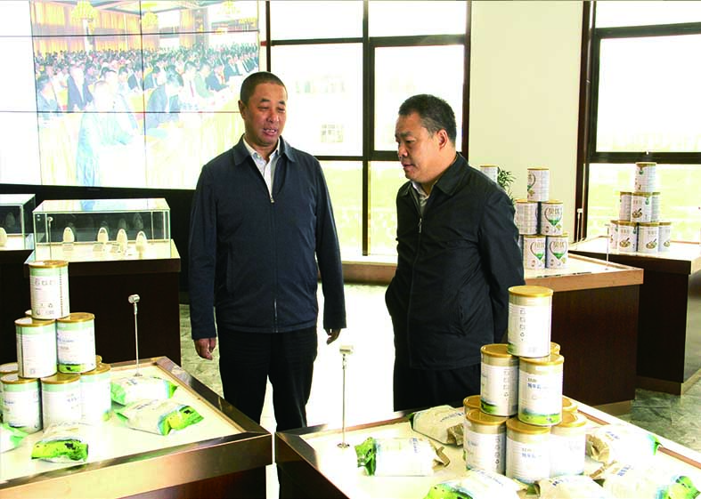 甘南州委常委、州紀委書記郝覺民(右)在華羚集團董事長敏文祥(左)的陪同下視察華羚公司