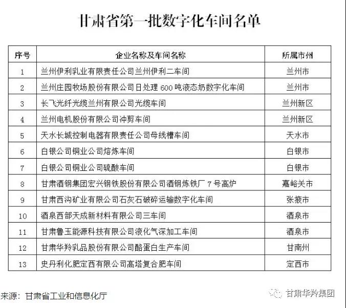 2020年12月15日,甘肅華羚乳品股份有限公司酪蛋白生產(chǎn)車(chē)間被省工業(yè)和信息化廳認(rèn)定為全省第一批數(shù)字化生產(chǎn)車(chē)間。